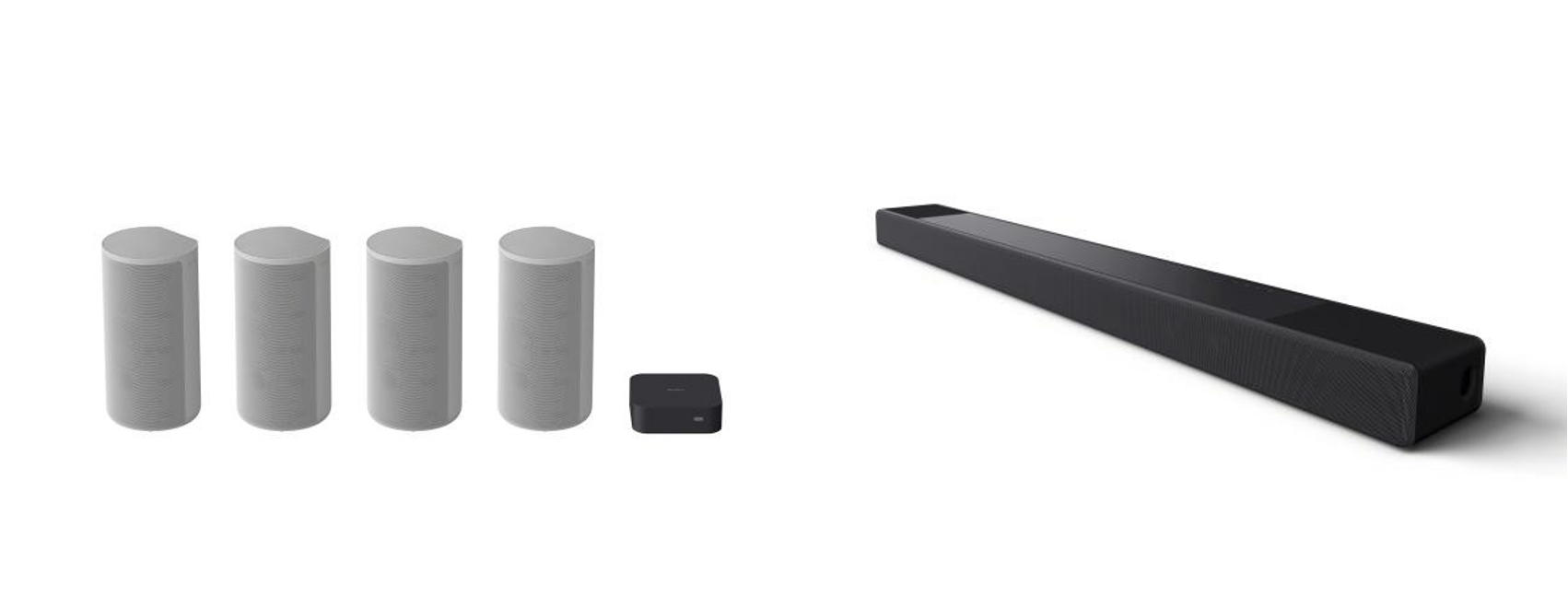 搭載360SSM的索尼家庭娛樂音頻產(chǎn)品:旗艦級(jí)家庭影音系統(tǒng)HT-A9(左),旗艦級(jí)回音壁HT-A7000(右,配合使用后環(huán)繞音箱SA-RS3S或新品SA-RS5、即可享受360SSM構(gòu)建的環(huán)繞音場(chǎng))