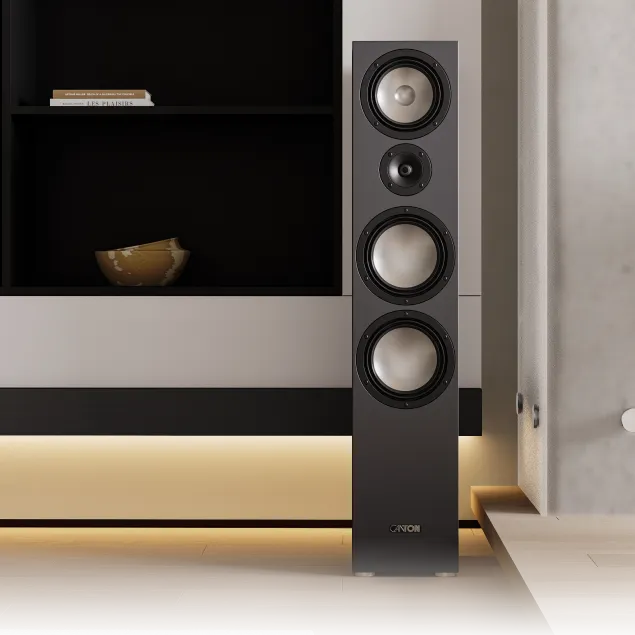 GLE 90 3路揚(yáng)聲器的設(shè)計(jì)既現(xiàn)代化又中性,能夠融入各種生活氛圍。提供了黑色、白色和馬卡薩三種飾面。GLE系列特色是磁性吸附的黑色織物罩。比例勻稱,底部集成了四個(gè)支腳,確保穩(wěn)固。